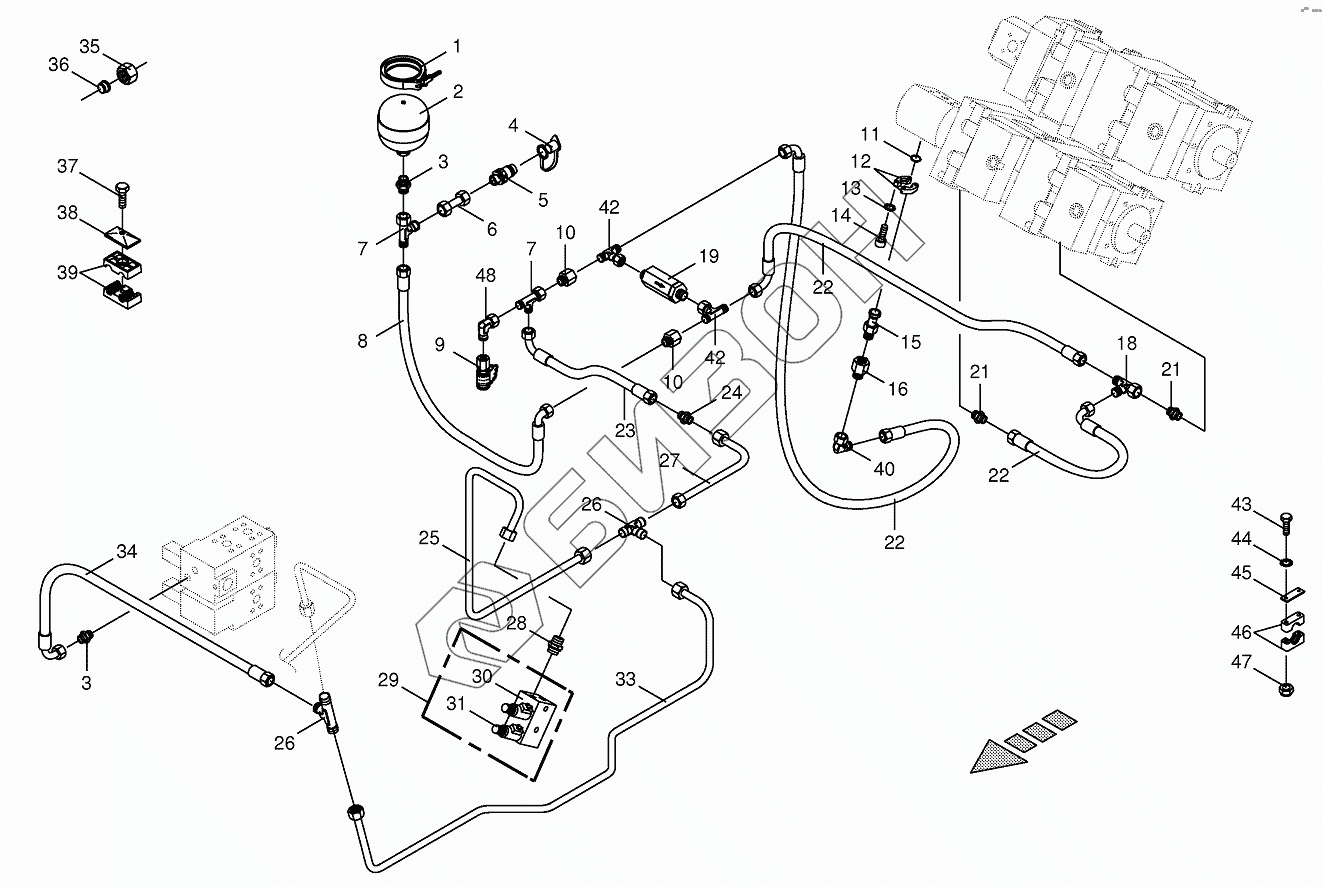 Графический каталог запасных частей к технике: KRONE BIG-X-650. Charge pressure lines-back