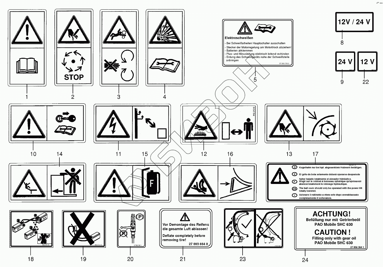 Графический каталог запасных частей к технике: KRONE BIG-X-650. Warning signs