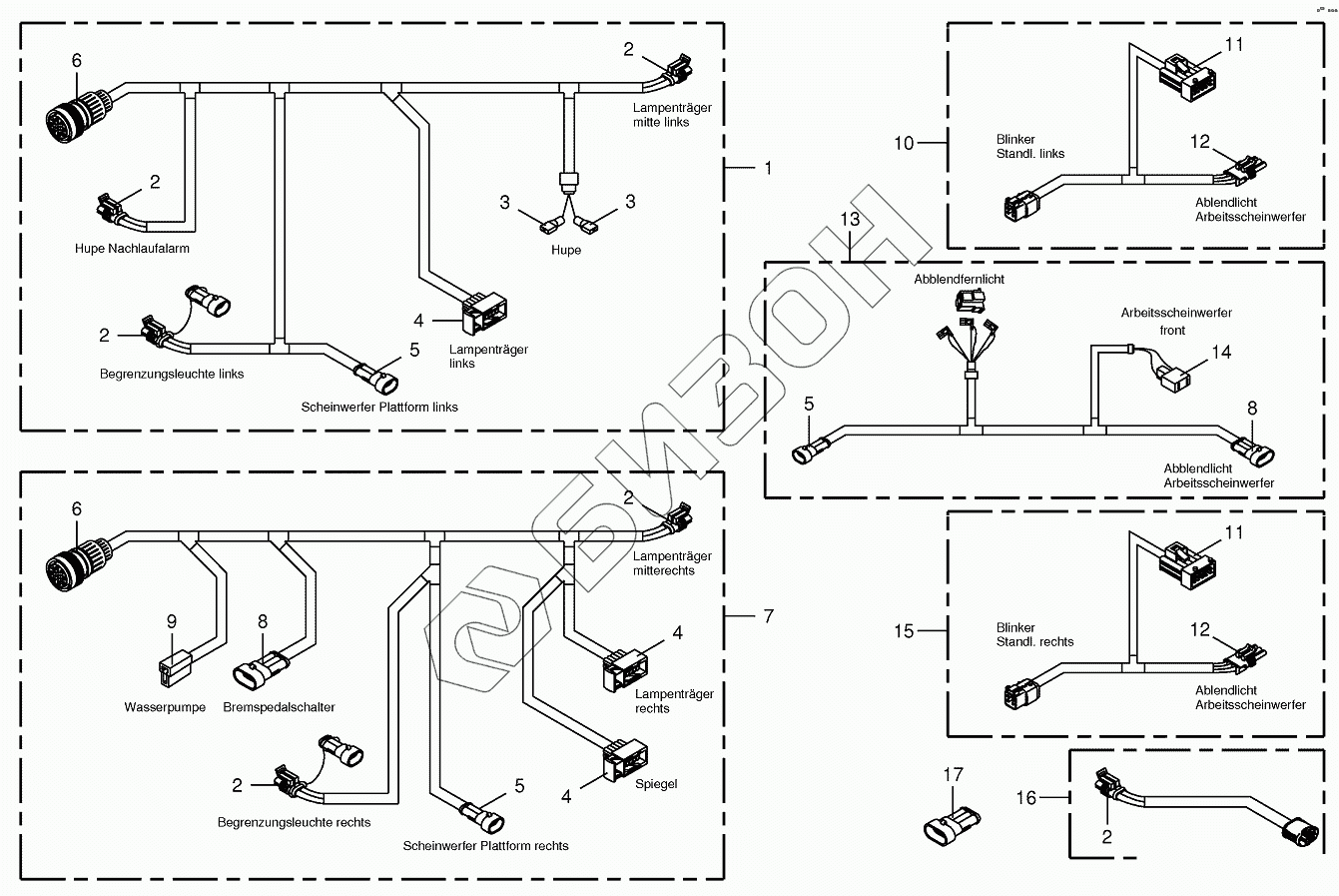 Графический каталог запасных частей к технике: KRONE BIG-X-700. Wiring Harness-lighting-front