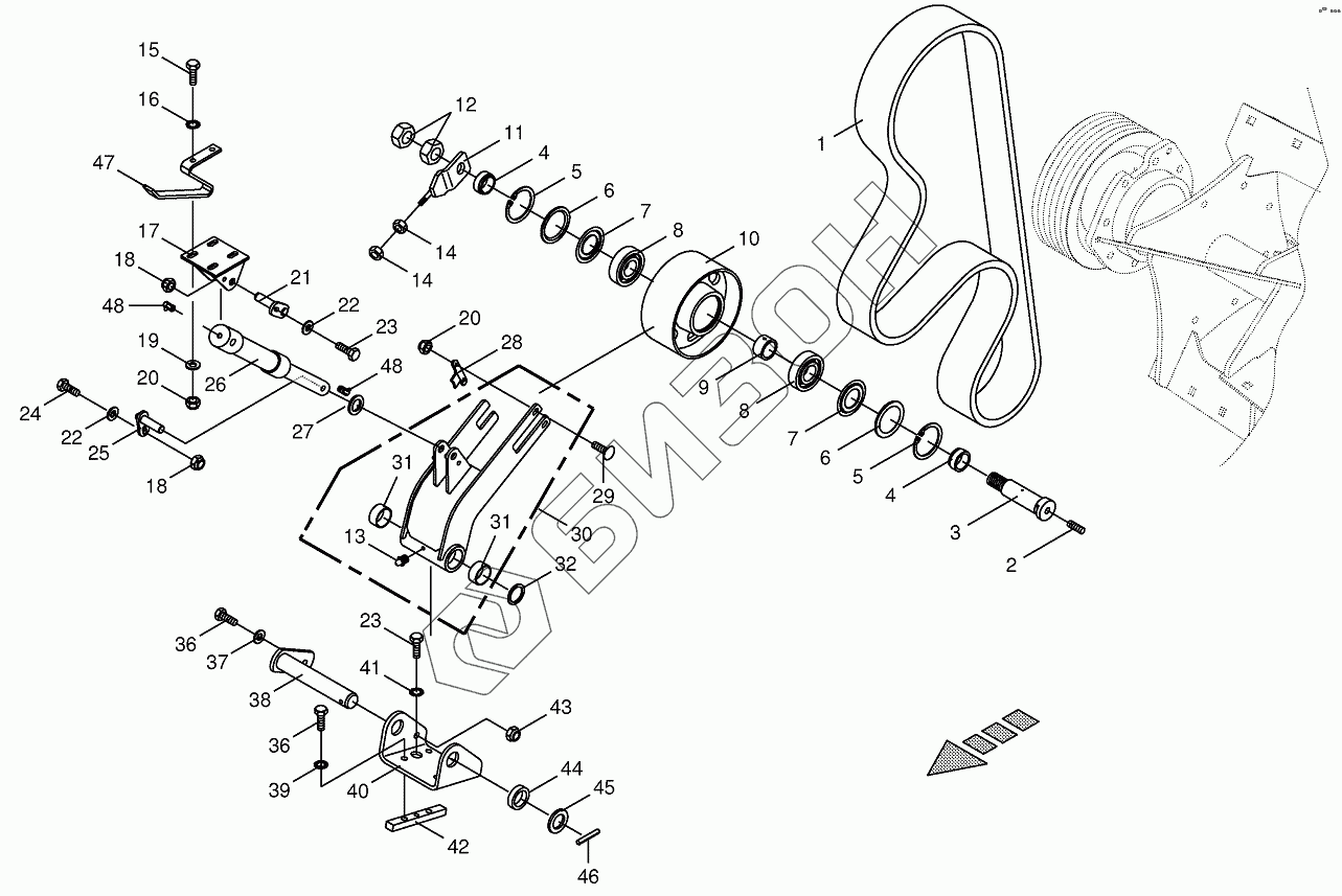 Графический каталог запасных частей к технике: KRONE BIG-X-700-1. Cracker drive/tensioning device