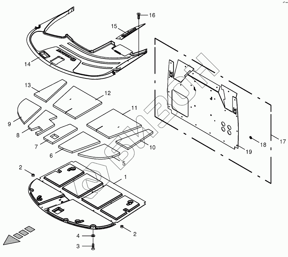 Графический каталог запасных частей к технике: KRONE BIG-X-700-1. Сab-Sound deadening