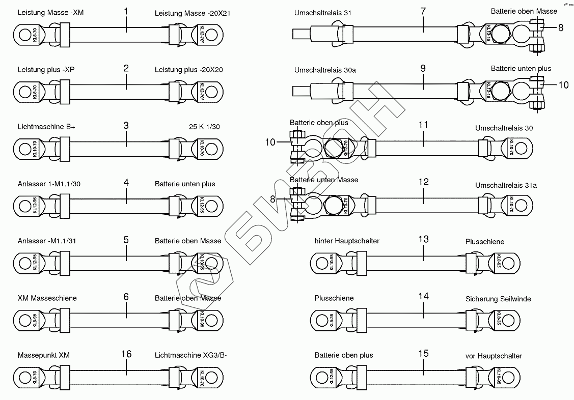 Графический каталог запасных частей к технике: KRONE BIG-X-700-1. Battery and ground cable