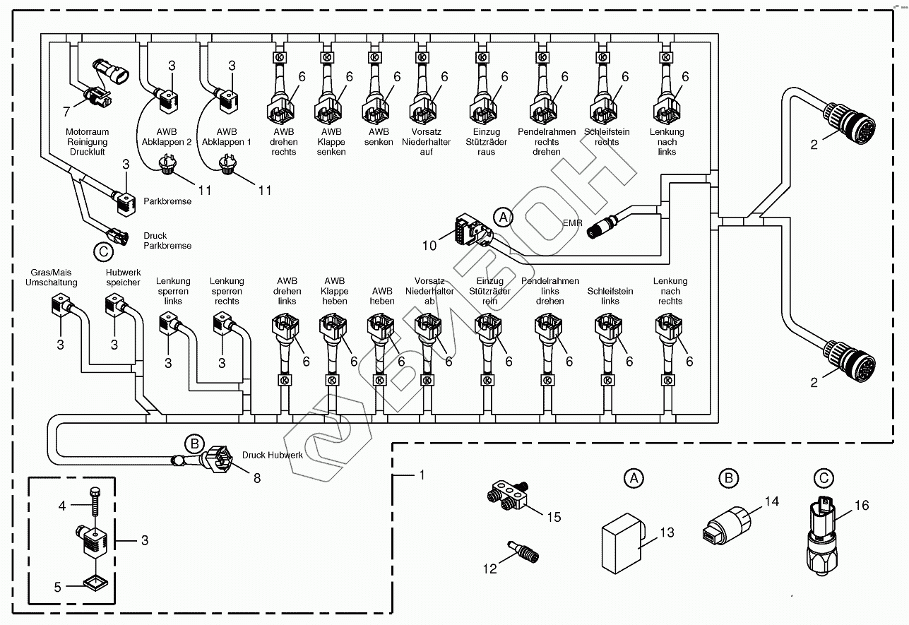 Графический каталог запасных частей к технике: KRONE BIG-X-700-1. Wiring Harness-valve block