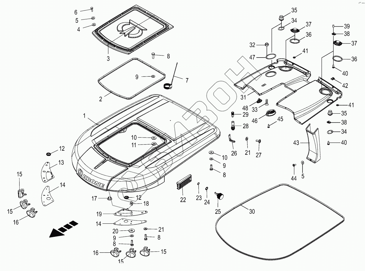 Графический каталог запасных частей к технике: KRONE BIG-X-700-1. Cab-roof
