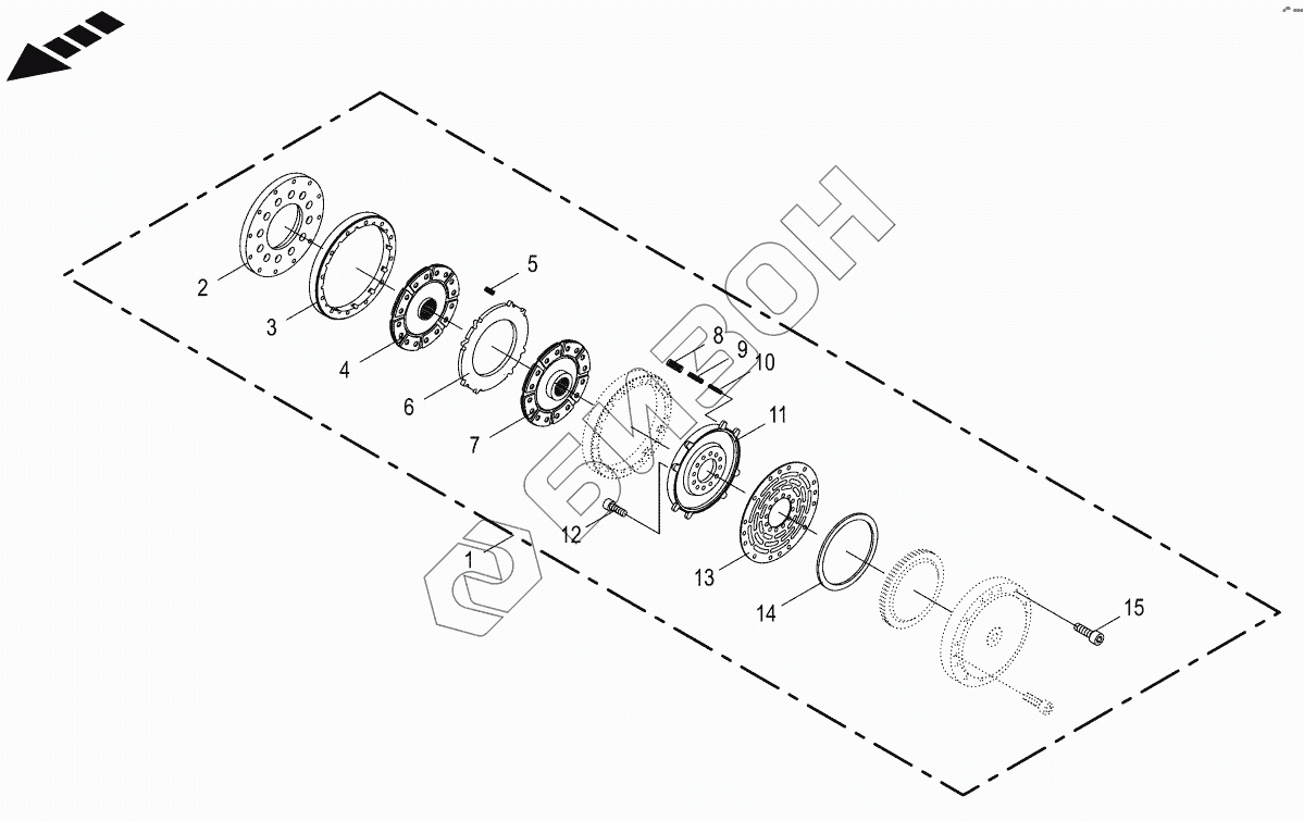 Графический каталог запасных частей к технике: KRONE BIG-X-700-1. Hydraulic four-surface clutch