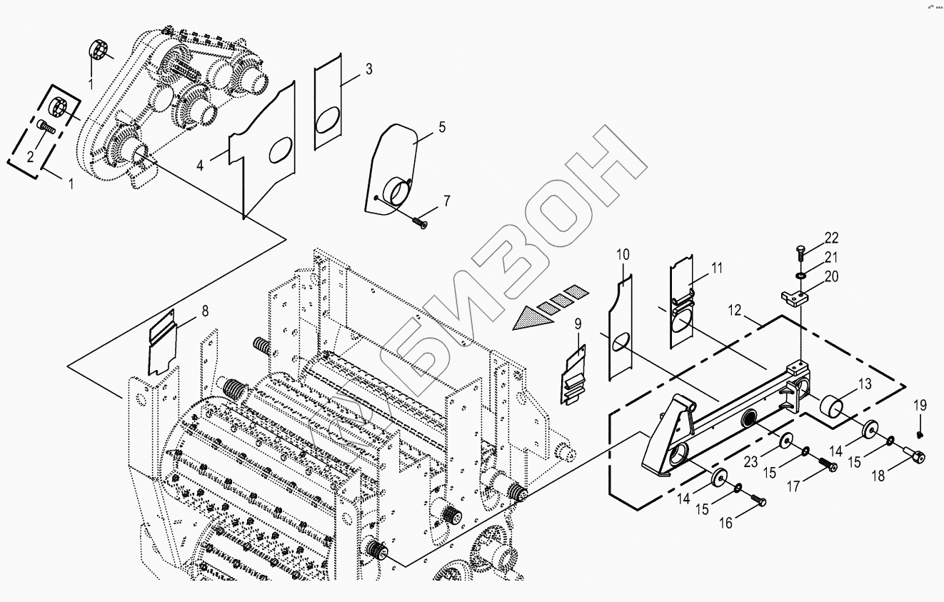 Графический каталог запасных частей к технике: KRONE BIG-X-700-1. Top feed roller bearing