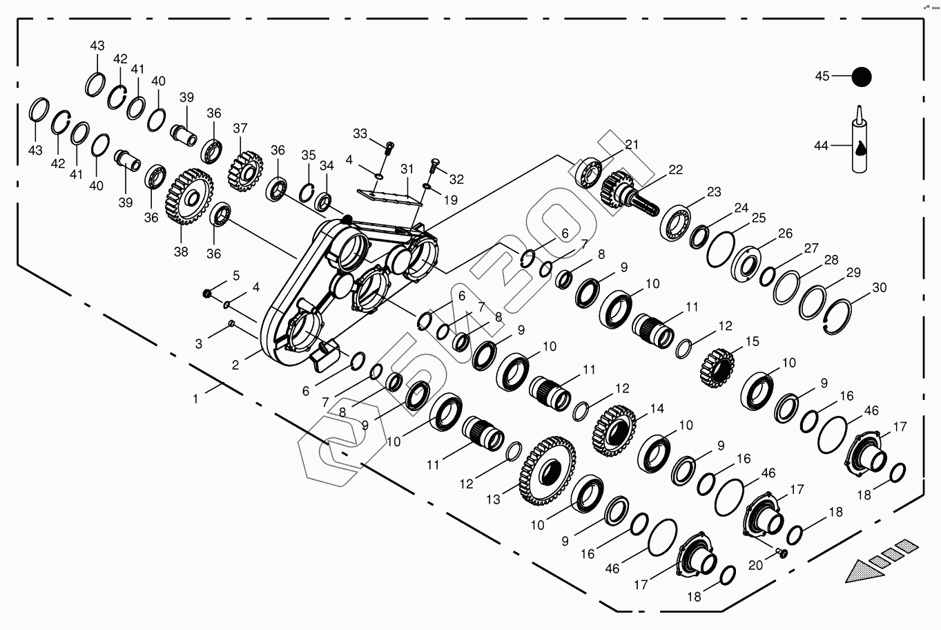 Графический каталог запасных частей к технике: KRONE BIG-X-700-1. Top roller gearbox