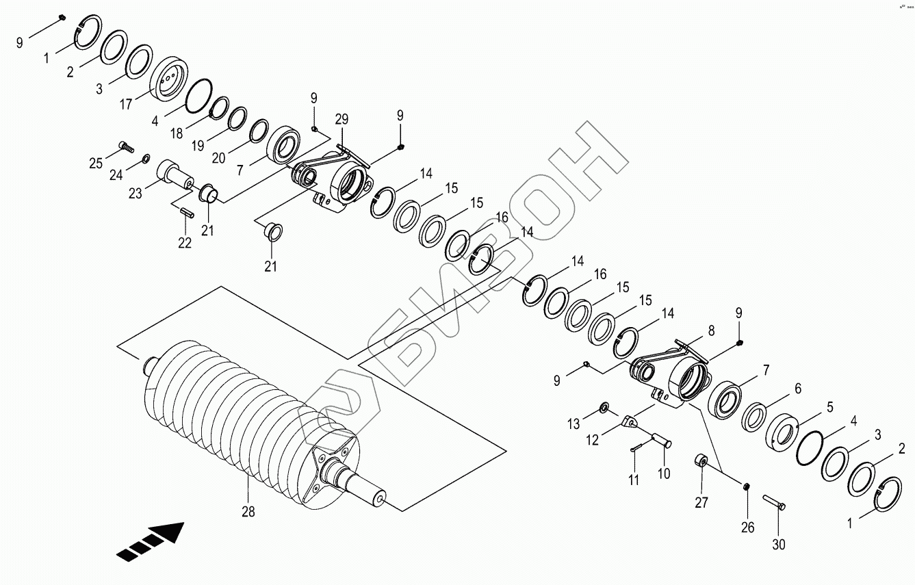 Графический каталог запасных частей к технике: KRONE BIG-X-700-1. Disc roller -front