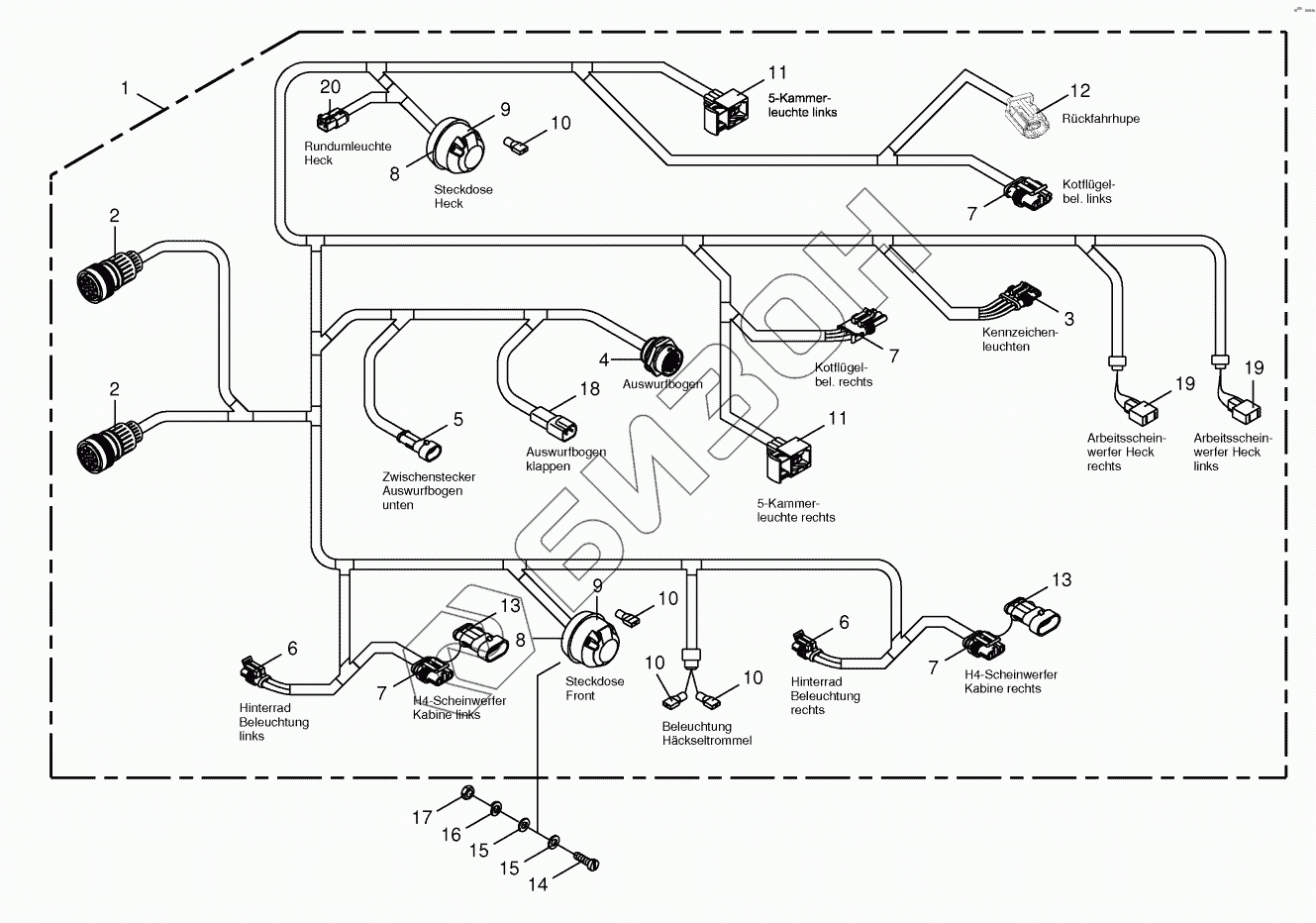 Графический каталог запасных частей к технике: KRONE BIG-X-700-1. Wiring Harness - lighting -back