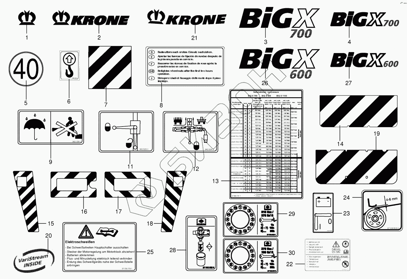 Графический каталог запасных частей к технике: KRONE BIG-X-700-1. General information labels