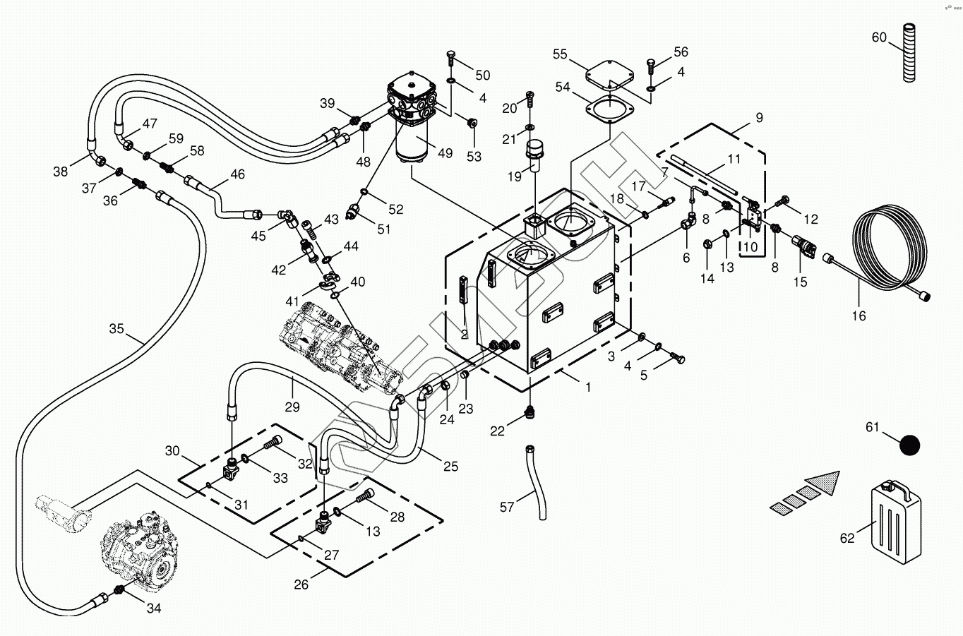 Графический каталог запасных частей к технике: KRONE BIG-X-700-1. Hydraulic tank / suction lines