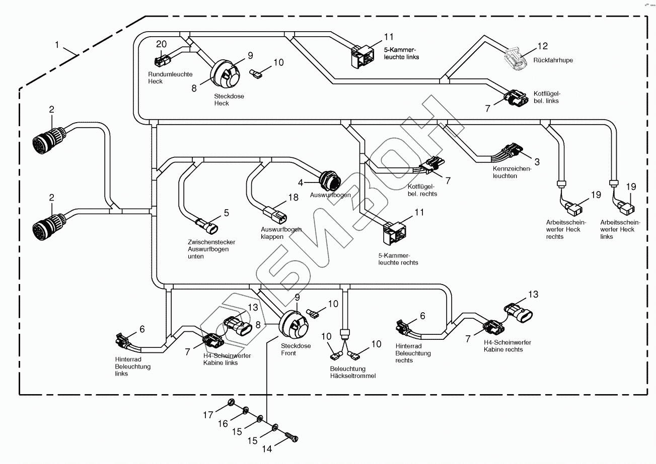 Графический каталог запасных частей к технике: KRONE BIG-X-700-1. Wiring Harness - lighting -back