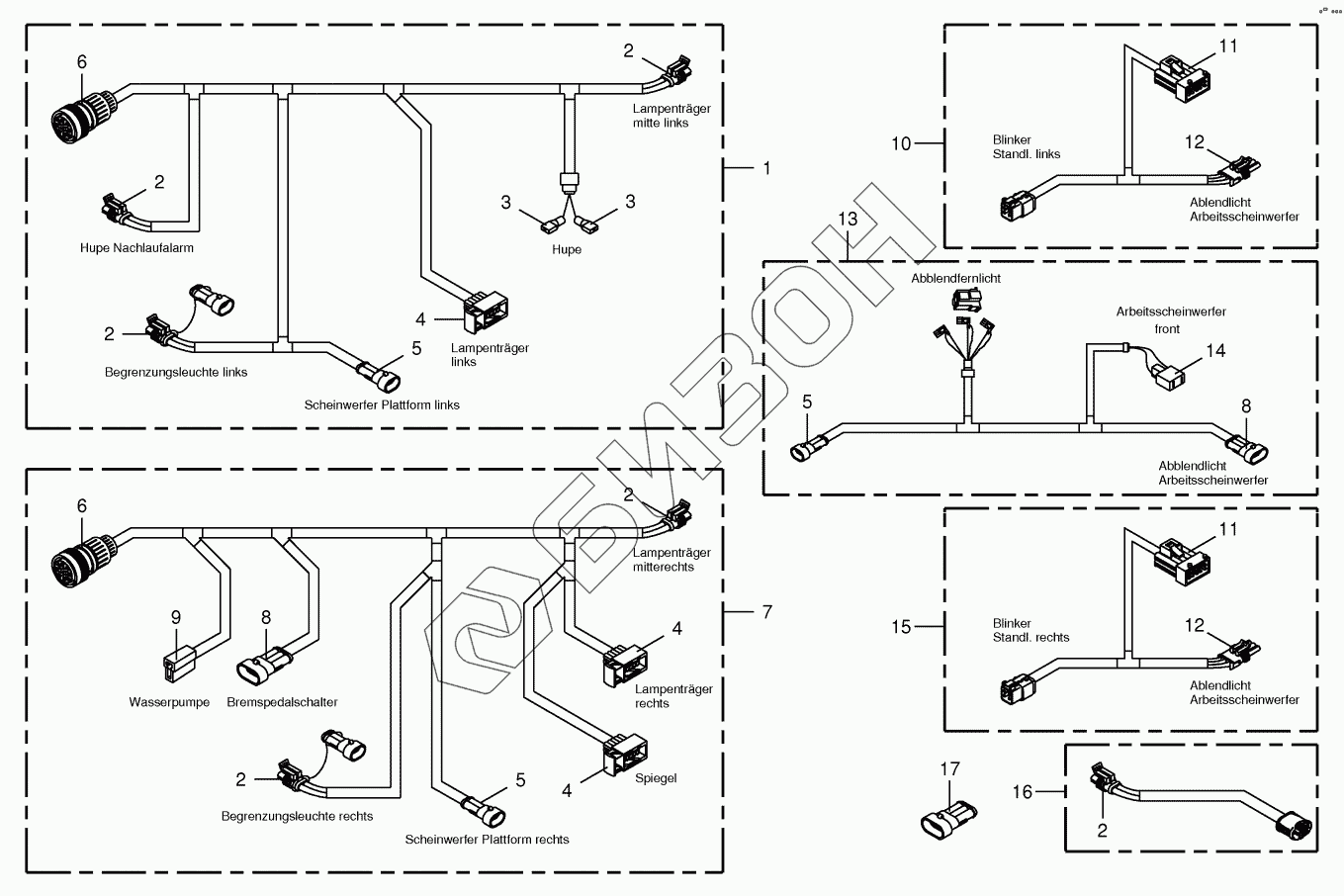 Графический каталог запасных частей к технике: KRONE BIG-X-700-1. Wiring Harness - lighting -front