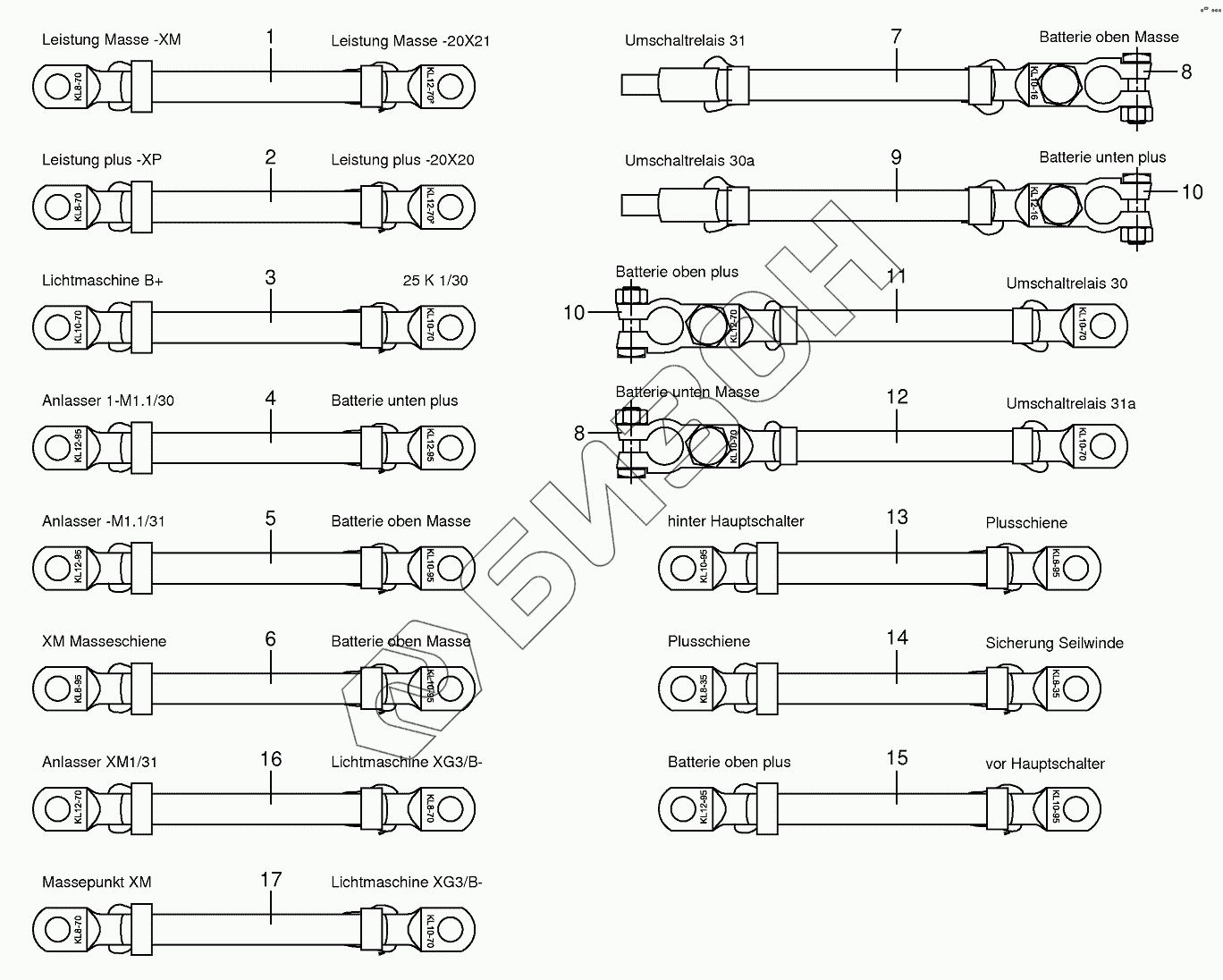 Графический каталог запасных частей к технике: KRONE BIG-X-700. Battery and ground cable