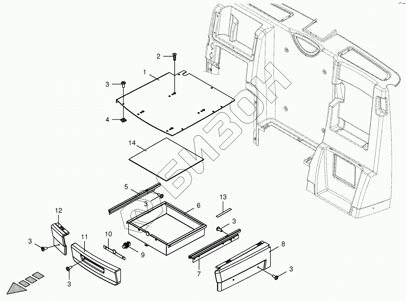 Графический каталог запасных частей к технике: KRONE BIG-X-700. Cab - drawer