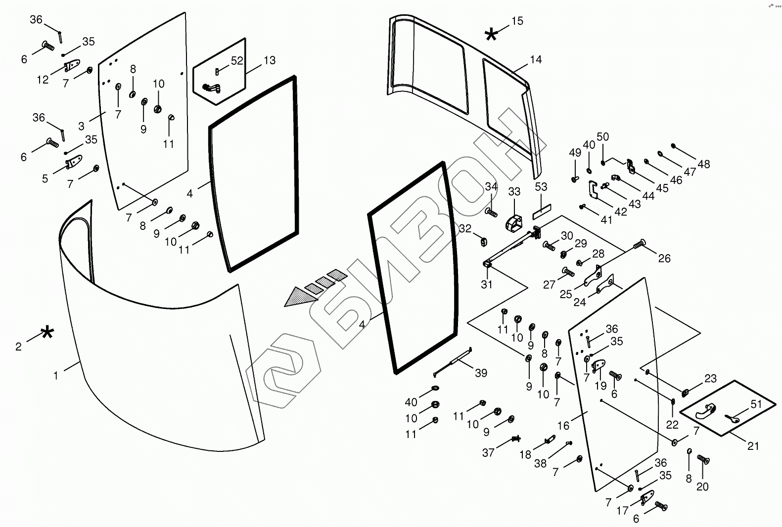 Графический каталог запасных частей к технике: KRONE BIG-X-700. Cab - glazing