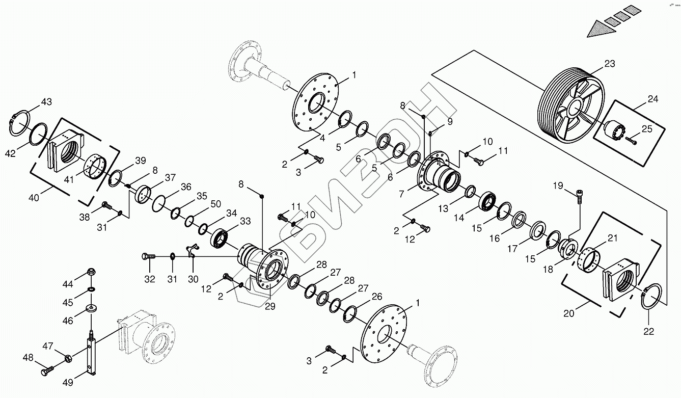 Графический каталог запасных частей к технике: KRONE BIG-X-700. Chopping drum bearing/counter bearing