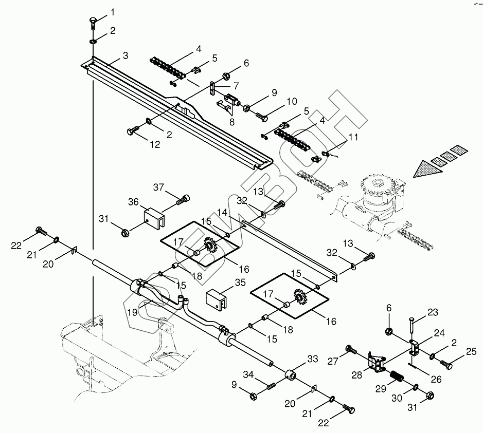 Графический каталог запасных частей к технике: KRONE BIG-X-700. Sharpening device drive