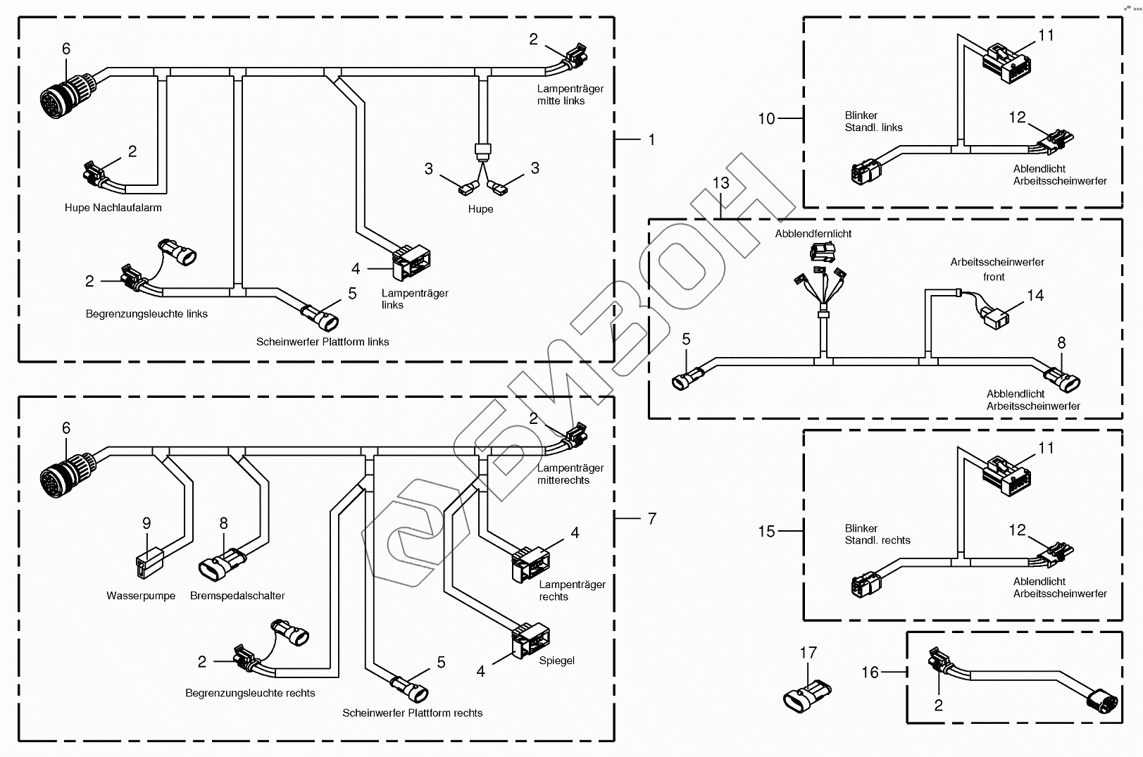 Графический каталог запасных частей к технике: KRONE BIG-X-700. Wiring Harness - lighting - front