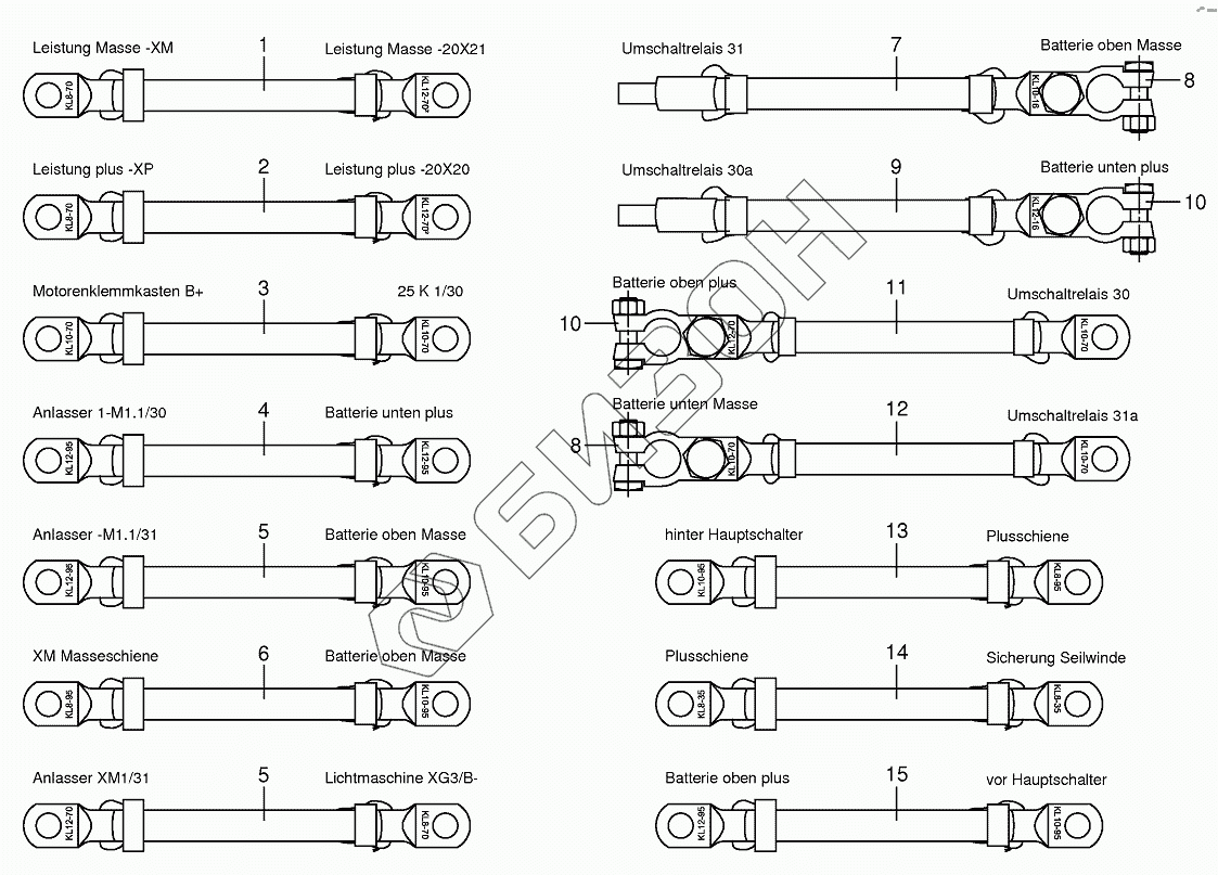 Графический каталог запасных частей к технике: KRONE BIG-X-700. Battery and ground cable