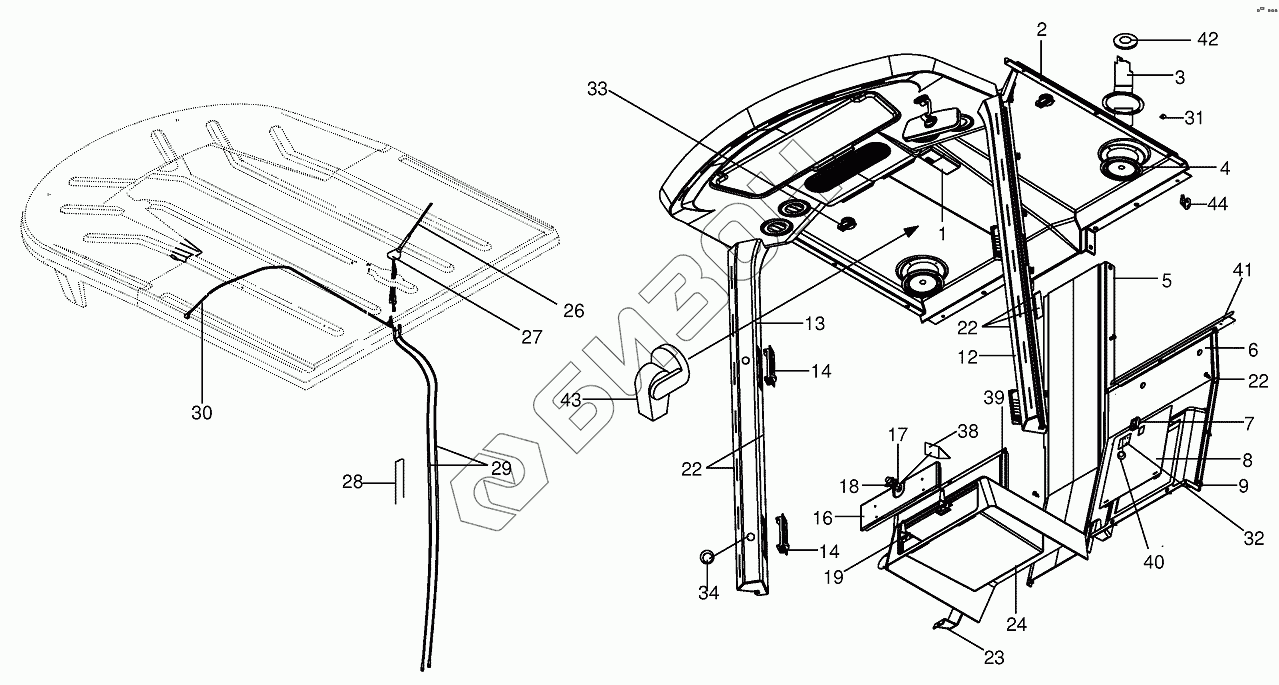 Графический каталог запасных частей к технике: KRONE BIG-X-700. Cab-Cab lining, aerial