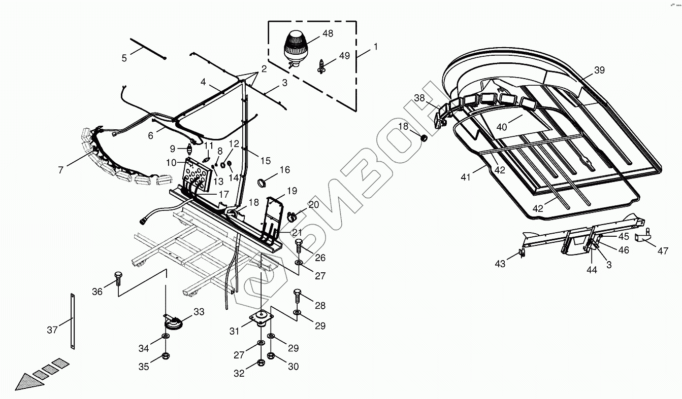 Графический каталог запасных частей к технике: KRONE BIG-X-700. Cab-mounting parts/electric parts