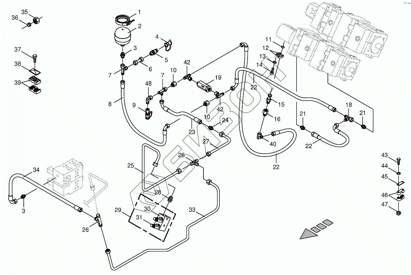 Графический каталог запасных частей к технике: KRONE BIG-X-700. Charge pressure lines-back