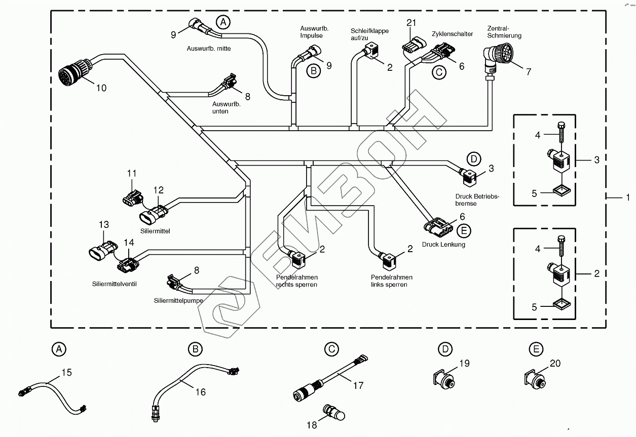 Графический каталог запасных частей к технике: KRONE BIG-X-700. Wiring harness-below the cabin
