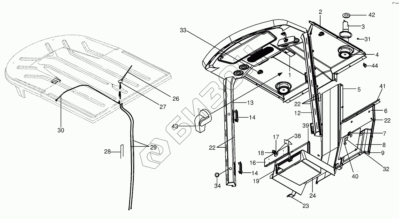 Графический каталог запасных частей к технике: KRONE BIG-X-800/1000. Cab-Cab lining, aerial
