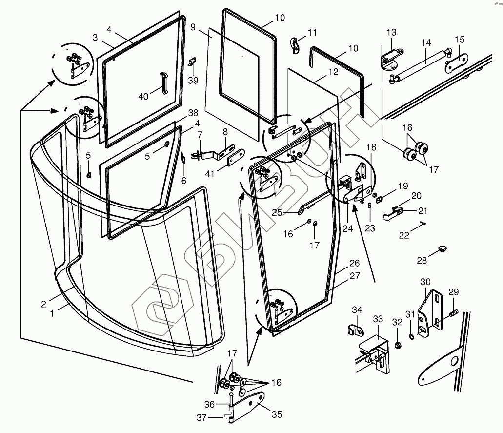 Графический каталог запасных частей к технике: KRONE BIG-X-800/1000. Cab-glazing