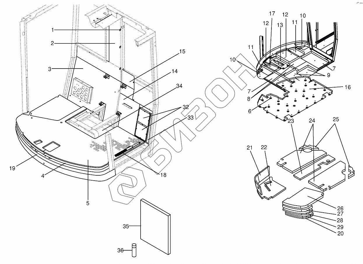 Графический каталог запасных частей к технике: KRONE BIG-X-800/1000. Cab-Sound deadening