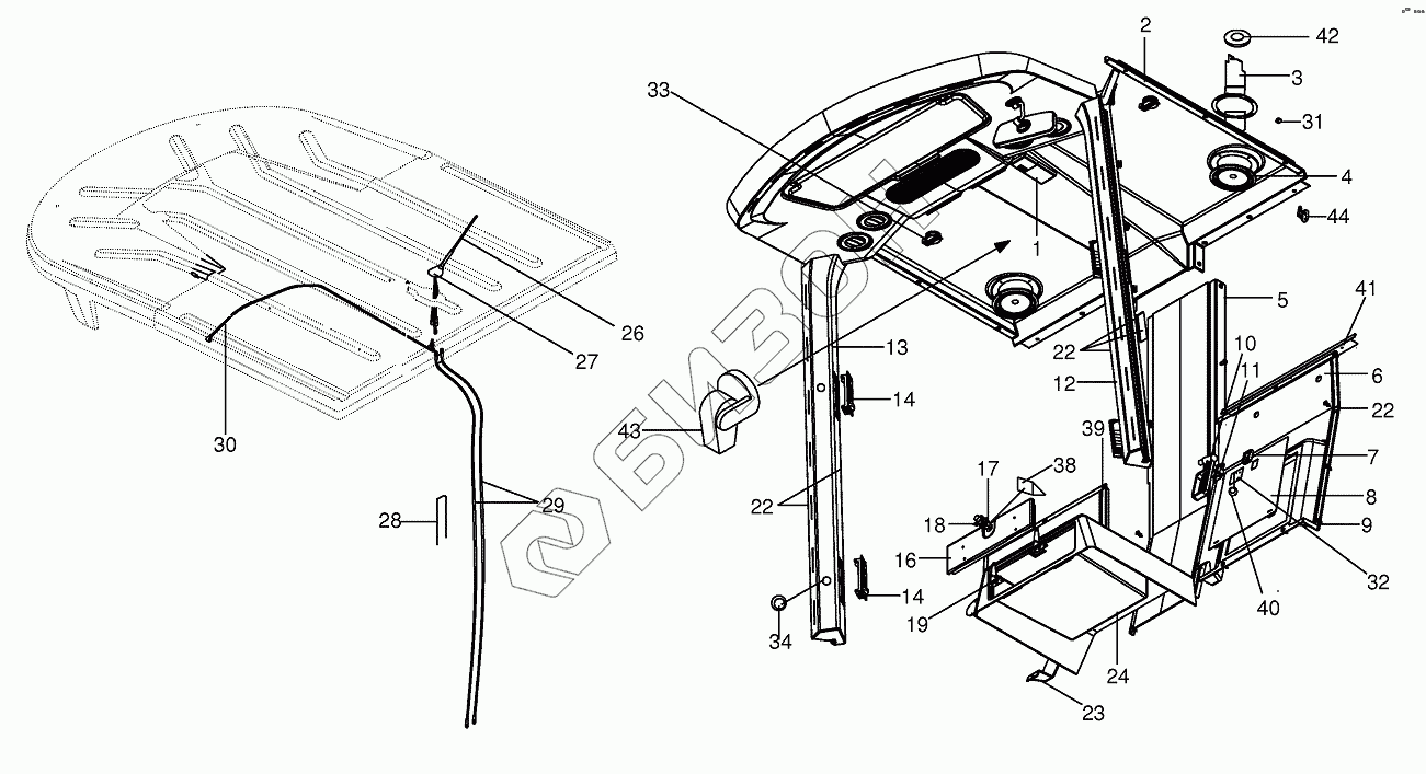 Графический каталог запасных частей к технике: KRONE BIG-X-800. Cab-Cab lining, aerial