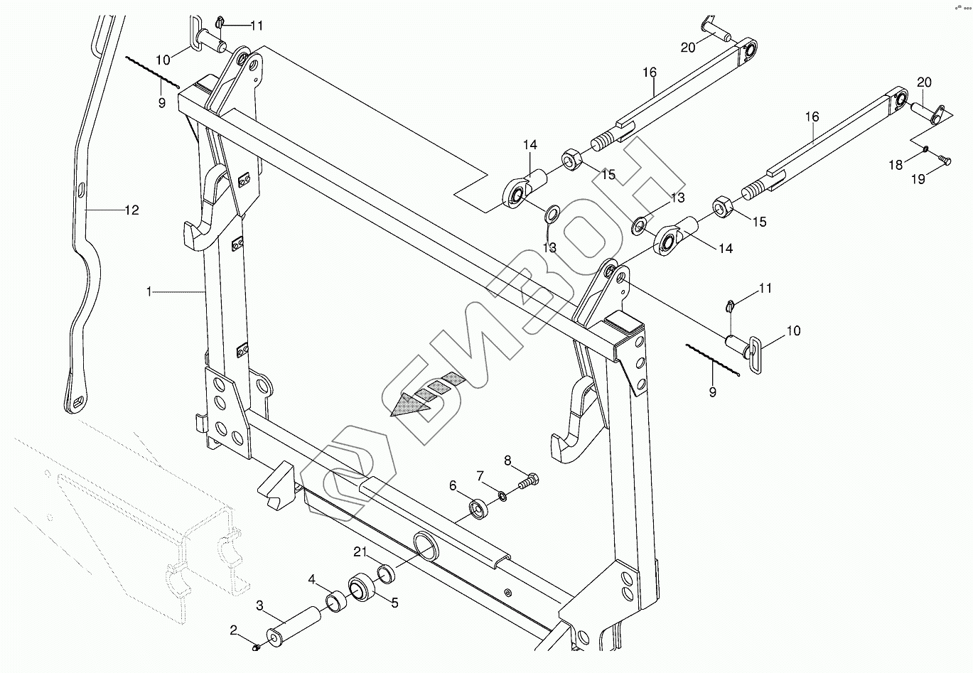 Графический каталог запасных частей к технике: KRONE BIG-X-800. Pivoting frame/linkage