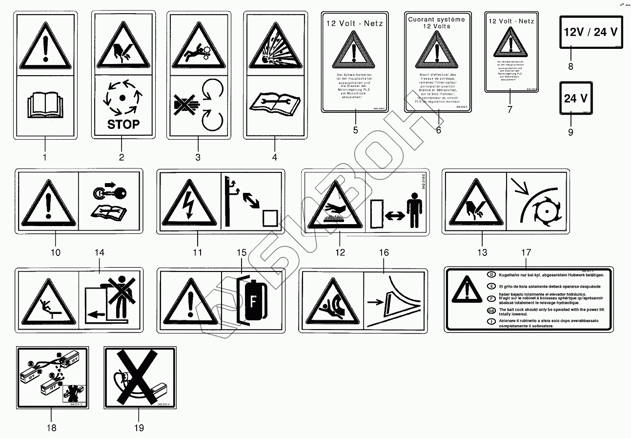Графический каталог запасных частей к технике: KRONE BIG-X-800. Warning signs