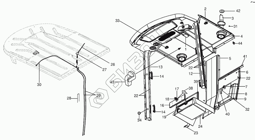 Графический каталог запасных частей к технике: KRONE BIG-X-800. Cab-Cab lining, aerial