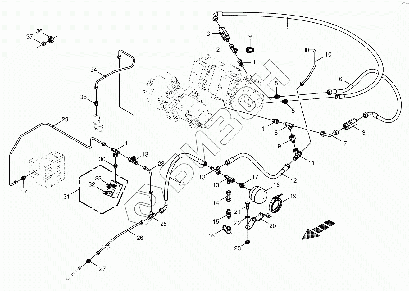 | 28 | 200212670 | Hydraulic line-incl. nozzle disc cap, cutting ring |