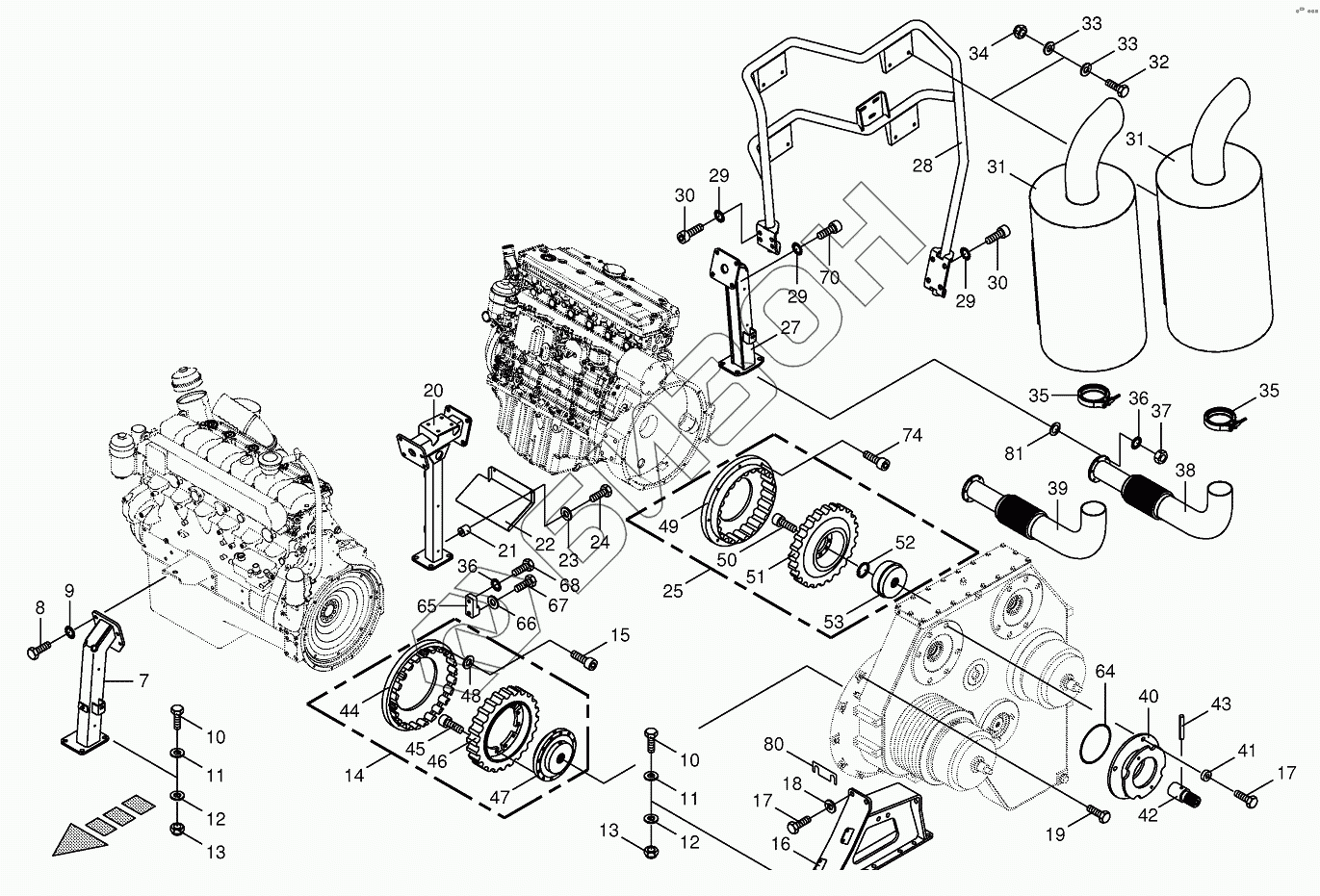 Графический каталог запасных частей к технике: KRONE BIG-X-800. Clutch/Silencer-BIG X800