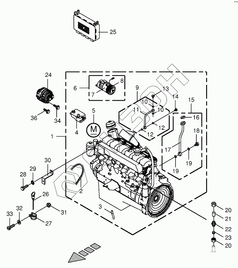 Графический каталог запасных частей к технике: KRONE BIG-X-800. Diesel engine-front