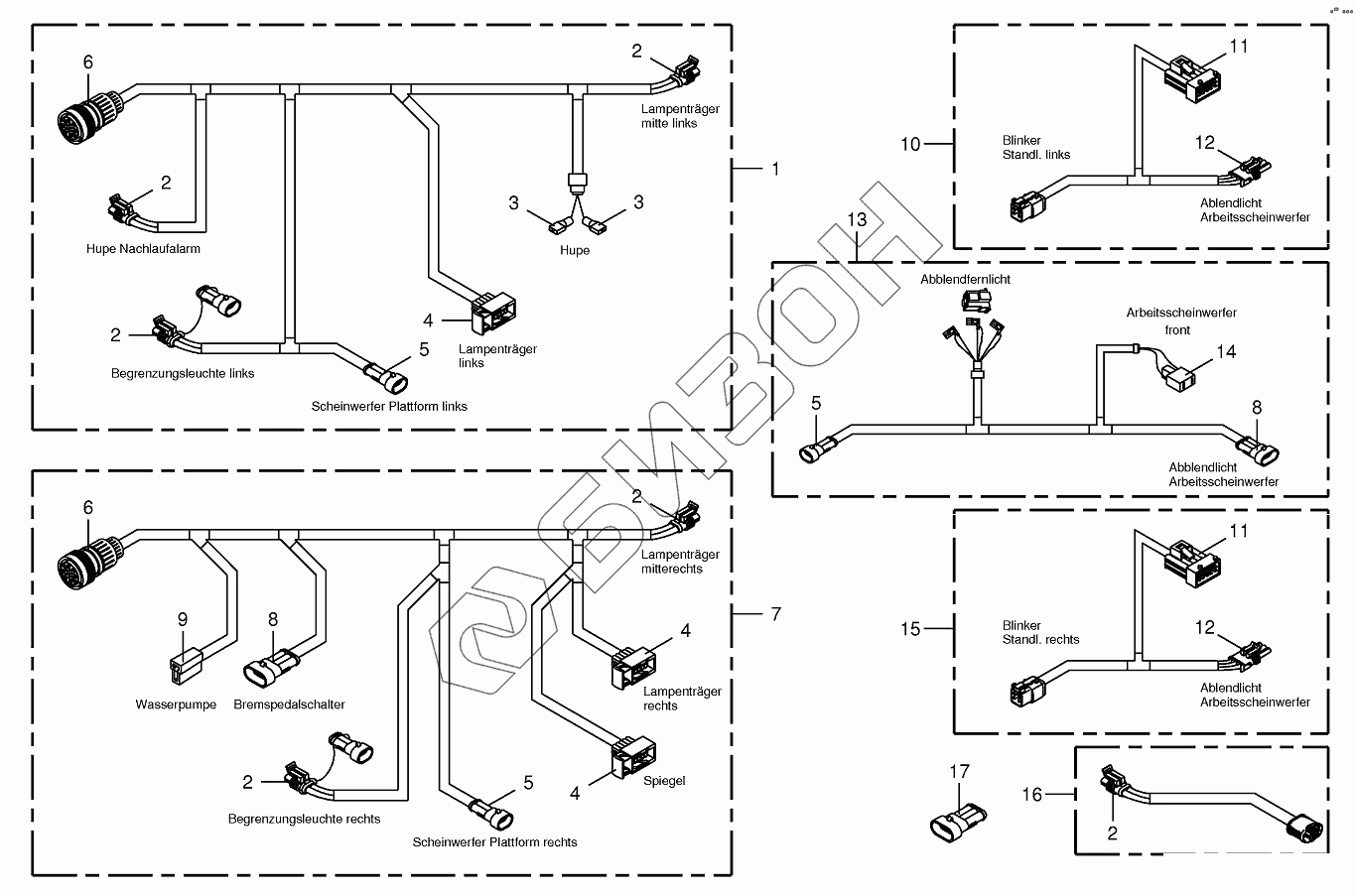 Графический каталог запасных частей к технике: KRONE BIG-X-850/1100. Wiring Harness-lighting-front