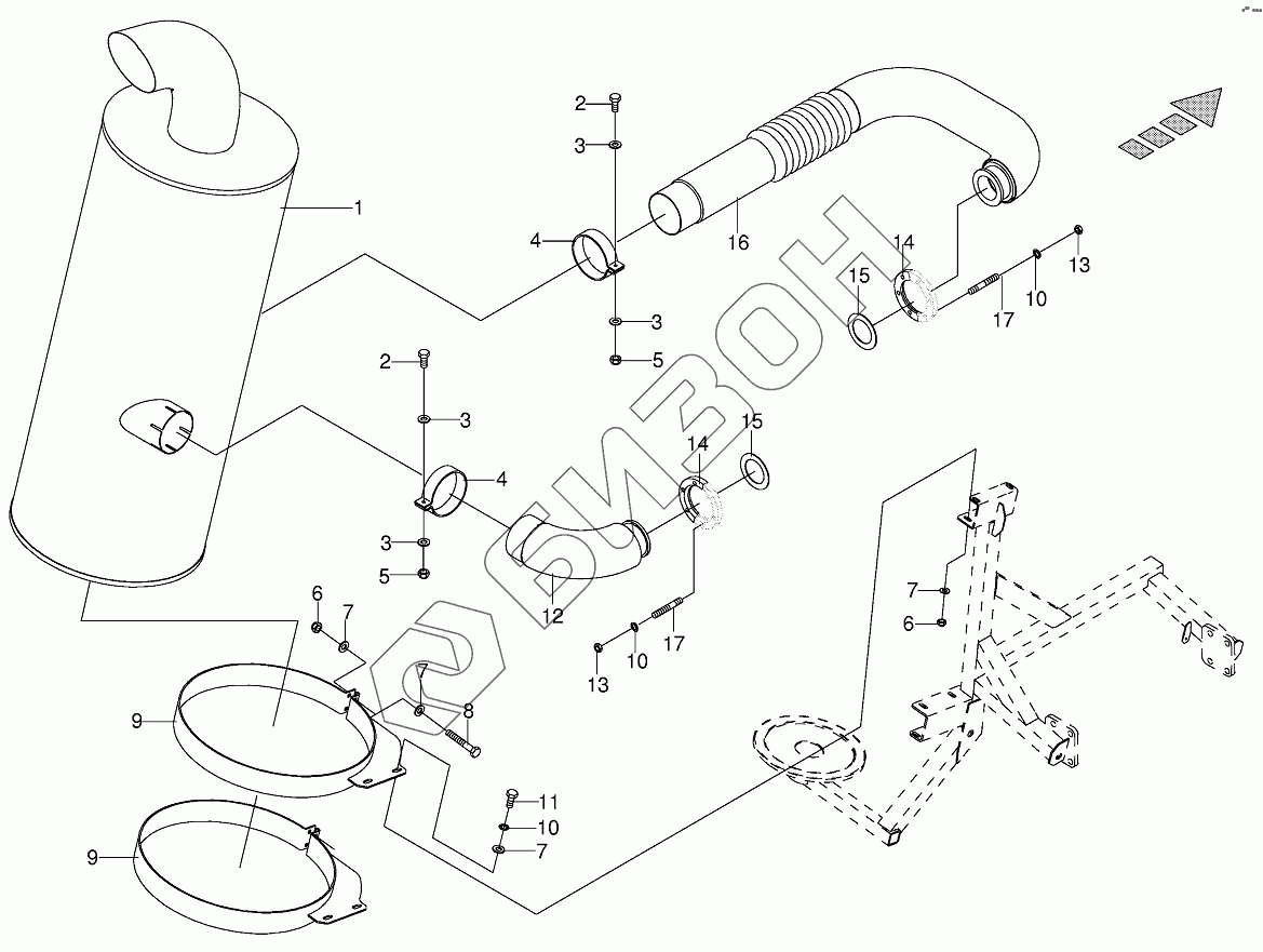 Графический каталог запасных частей к технике: KRONE BIG-X-V8/BIG-X-V12. Silencer