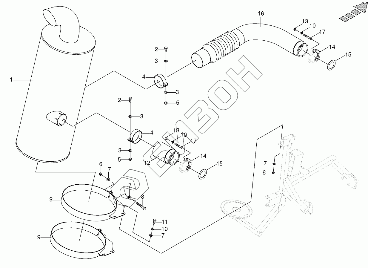 Графический каталог запасных частей к технике: KRONE BIG-X-V8/BIG-X-V12. Silencer OM444