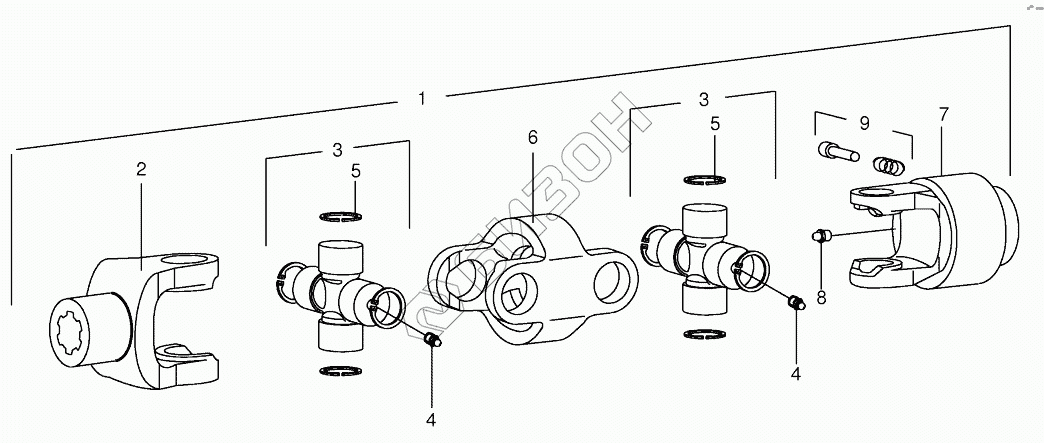1 00 955 401 1 Double universal joint -right- hand machine side / left hand direction of rotation