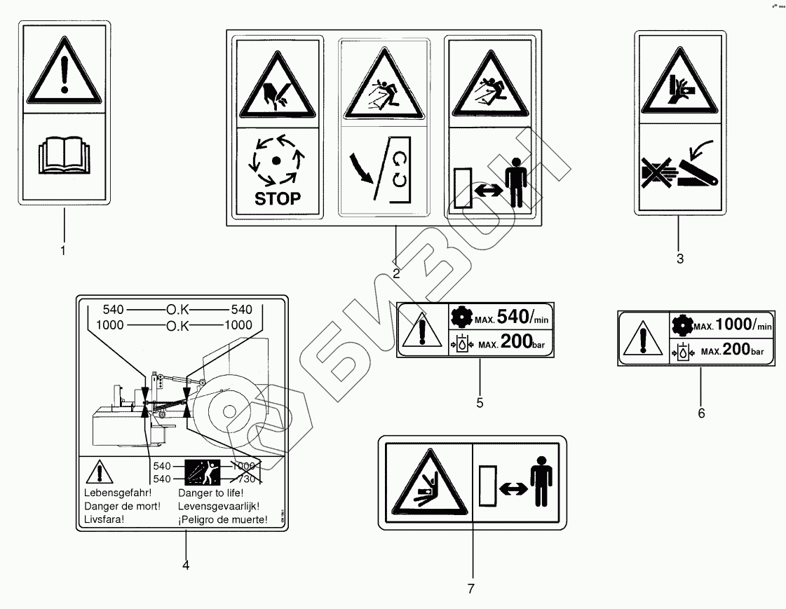 Графический каталог запасных частей к технике: KRONE EasyCut F360M. Warning signs