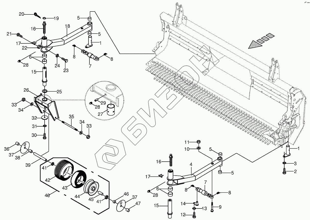 Графический каталог запасных частей к технике: KRONE EasyFlow 3001. Side view of supporting wheel