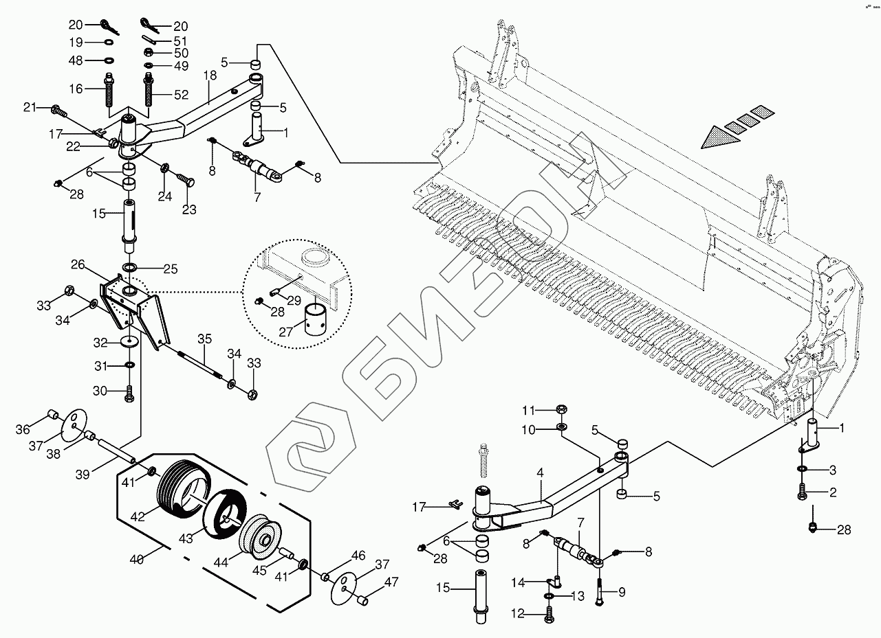 Графический каталог запасных частей к технике: KRONE EasyFlow 3801. Side view of supporting wheel