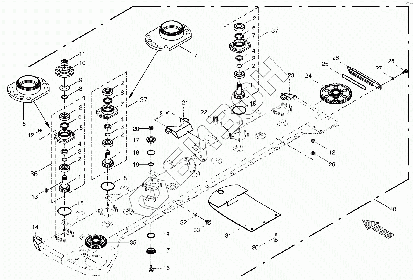 | 36 | 002530211 | Bearing housing-10 hole, cpl. |
