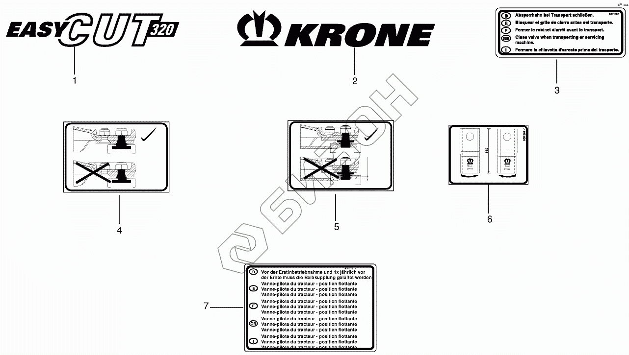 Графический каталог запасных частей к технике: KRONE EC280/320. General information labels