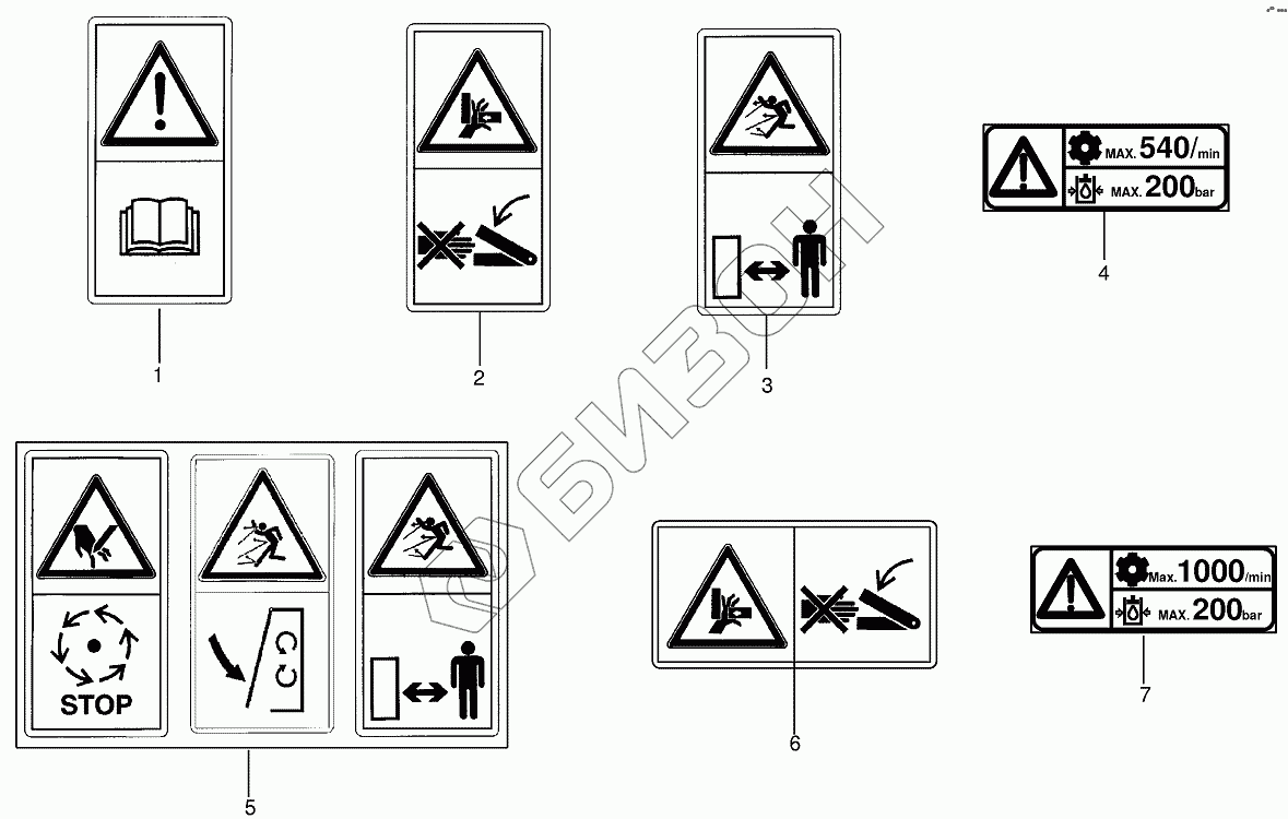 Графический каталог запасных частей к технике: KRONE EC280/320. Warning signs