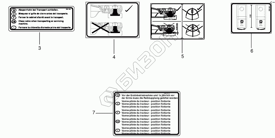 Графический каталог запасных частей к технике: KRONE EC280/320. General information labels