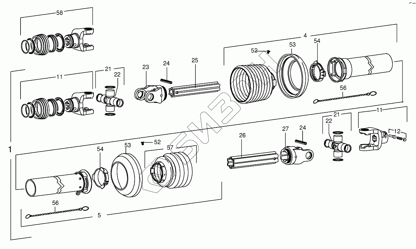 Графический каталог запасных частей к технике: KRONE EC32CV/32CV-F. Main Pto shaft